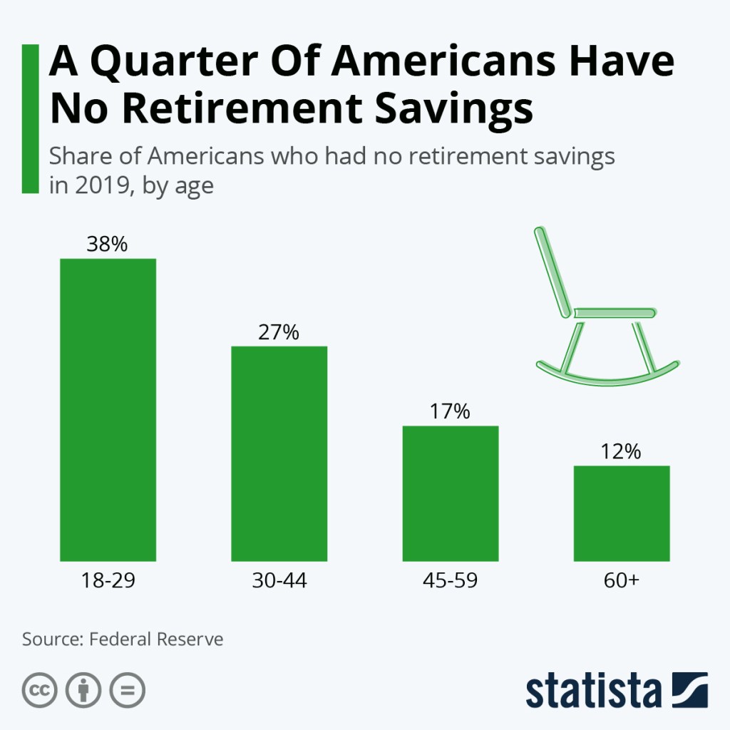 Americans are having trouble financially preparing themselves for life after work. A recent Federal Reserve report found that nearly a quarter of U.S. adults have absolutely no retirement savings or pension. Even though the level of preparation increases as people get older, concern about inadequate savings is still readily apparent across all age groups, even older people in their 60s.