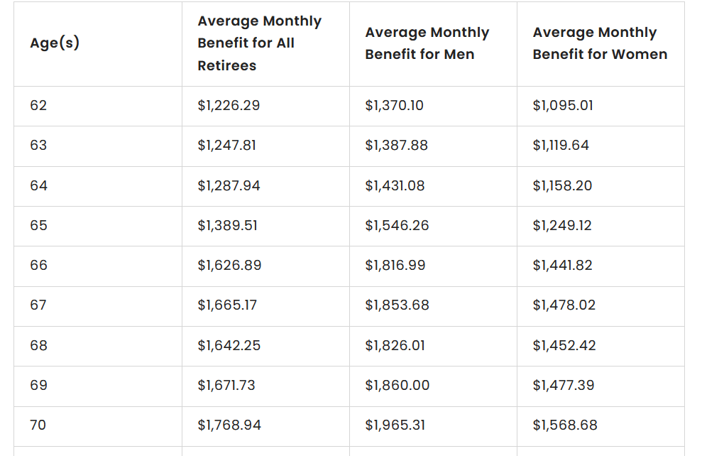 So how will you afford retirement without any savings? Don’t look to Social Security. Here’s some numbers on average Social Security payments. The full chart at the source website goes up to age 100.