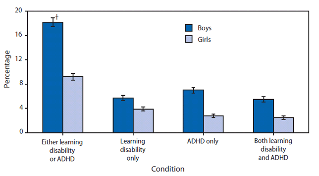 QuickStats: Percentage of Youths Aged 5–17 Years Ever Diagnosed as Having a Learning Disability and/or Attention Deficit Hyperactivity Disorder (ADHD),* by Sex — National Health Interview Survey, United States, 2006–2009