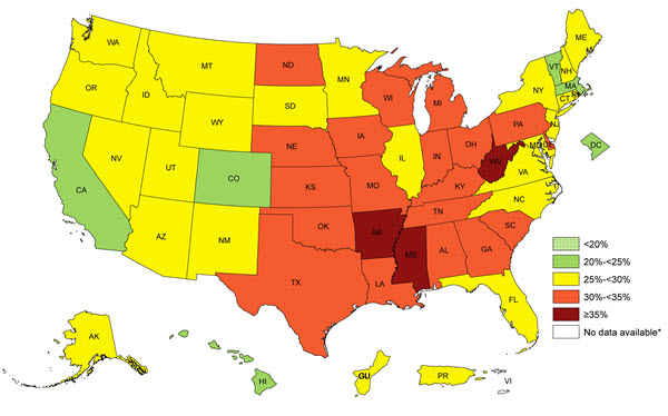 Source: Obesity Prevalence Maps 2014 – DNPAO – CDC