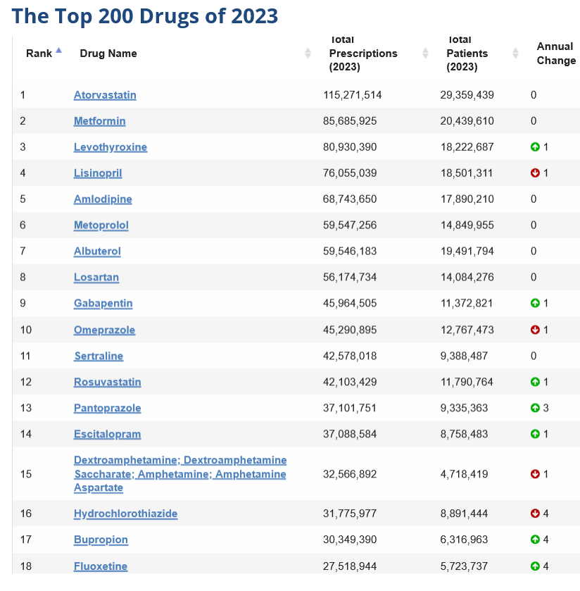 ClinCalc DrugStats Database – https://clincalc.com/DrugStats/