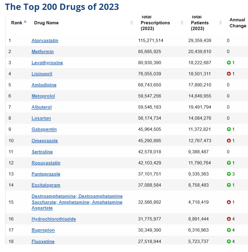 ClinCalc DrugStats Database – https://clincalc.com/DrugStats/