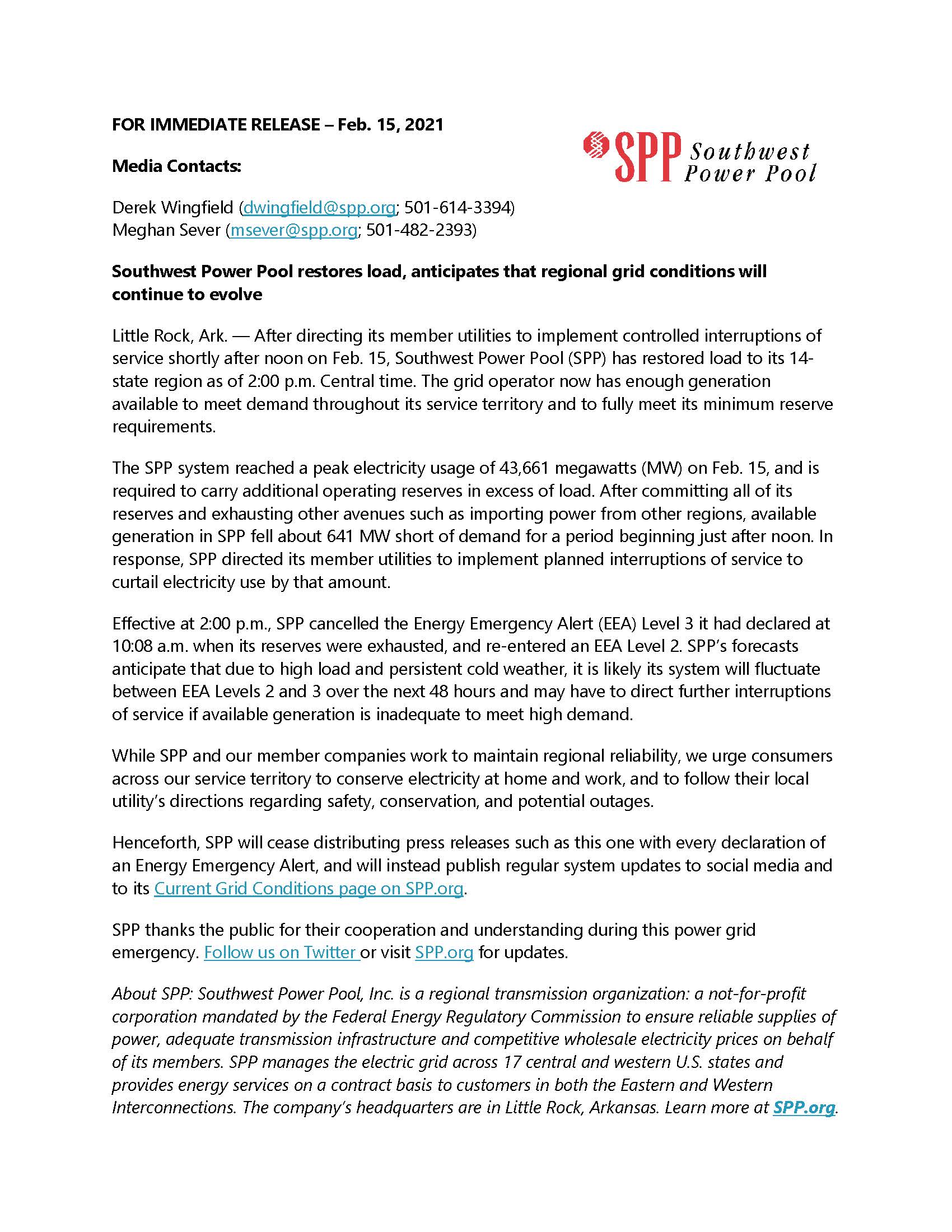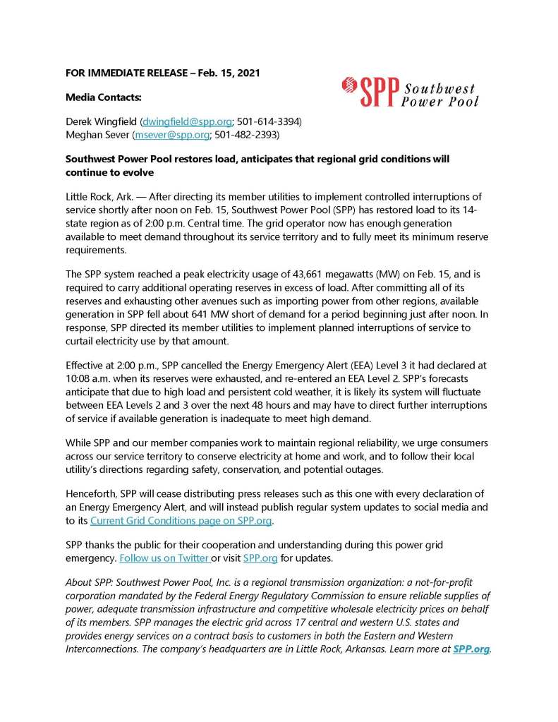 We are subject to periodic rolling blackouts here in Oklahoma. Our relatives in Texas have zero electricity and zero natural gas.